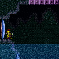 On entry, kill or dodge the first Rinkas then Crystal Flash. While in the light orb, Samus will be almost immune and the Metroids will take damage. Lure the Metroids after Crystal Flashing, and return to the light orb to kill them. Entrance condition: {